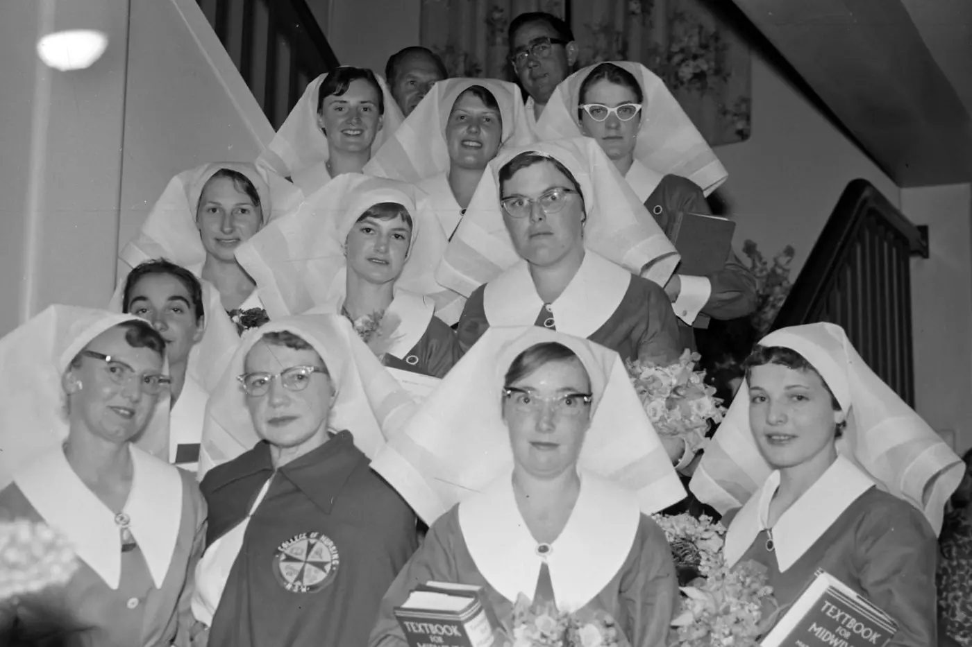 A candlelight ceremony marked the graduation of nurses at Orange Base Hospital in December 1963. Matron Agnes Field was joined by special guest Miss E Shaw, the former matron of Crown Street Women’s Hospital. The graduates were: Denise Simpson, Elaine Scanlon, Anne Kershaw, Joyce Shepherd, Leone McNaught, Margaret Hicks, Grace Hewitt, Helen Shaw, Myra Pascoe and two male graduates Robert Dunn and Terence McGrath.