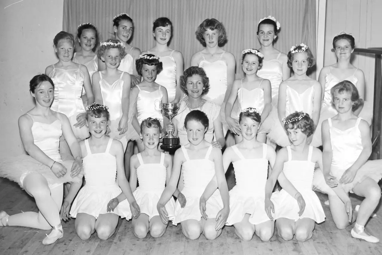 This weeks’ photo dates back 63 years to 1961 when Marie Murray’s immensely popular dancing academy coached hundreds of young Orange dancers. It shows Mrs Murray and some of her many ballet pupils with a trophy they won in a recent competition. Besides ballet, pupils could learn tap dancing and Scottish dancing.