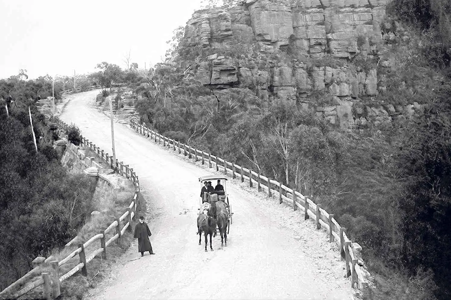 Descending from Mount Victoria to Hartley, construction of Victoria Pass from 1830–38 featured a massive stone-walled causeway designed to cross the steep descent.