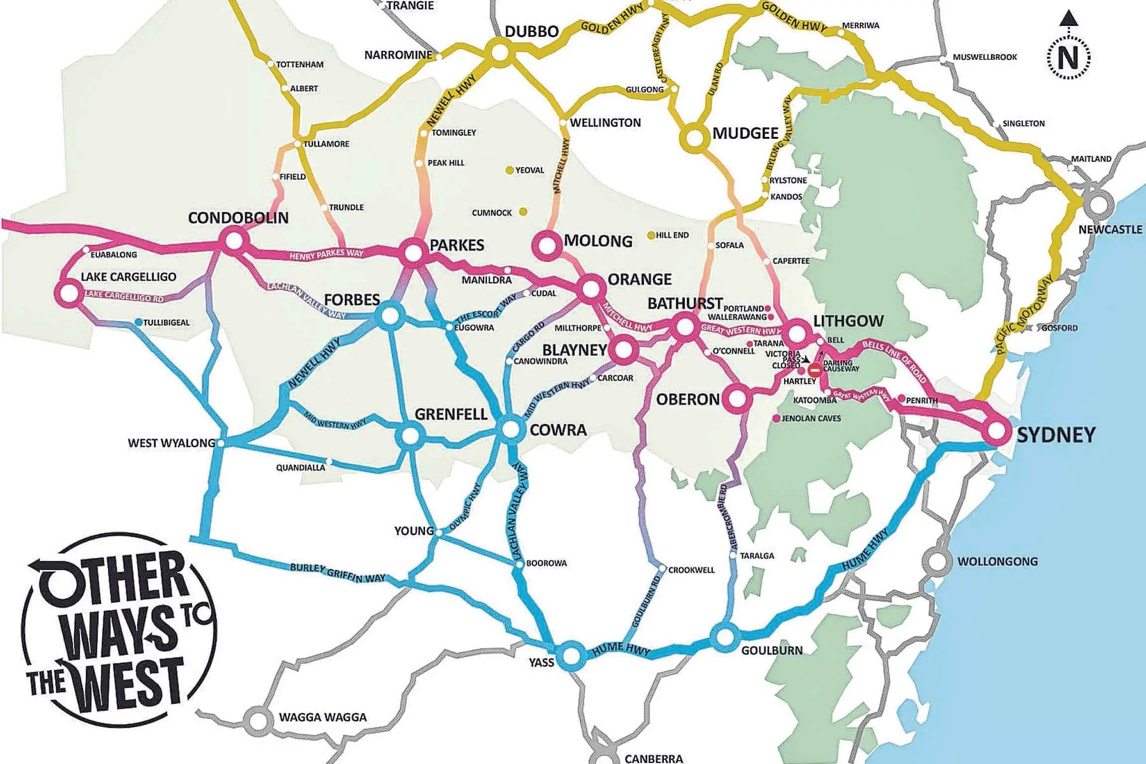 The campaign highlights the Bells Line of Road and the Darling Causeway as offering one of the most stunning ridge-top drives in NSW, while travellers from the north can use the Golden Highway, and those from Sydney's south-west and Canberra use the Hume Highway.